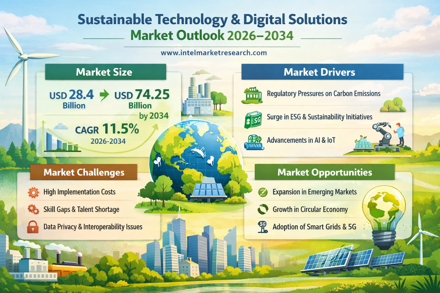 According to a new report from Intel Market Research, the global Sustainable Technology and Digital Solutions market was valued at USD 28.40 billion in 2025 and is projected to reach USD 74.25 billion by 2034, growing at a robust CAGR of 11.5% during the forecast period (2026–2034). This growth is propelled by tightening global regulatory frameworks around carbon disclosure, surging enterprise demand for ESG compliance tools, accelerating digital transformation initiatives worldwide, and increasing corporate awareness of climate risk management.