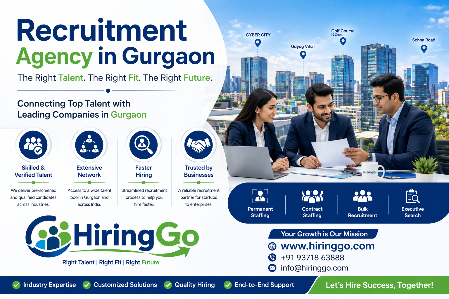 In today’s fast-moving business environment, a Recruitment Agency in Gurgaon offers a smart hiring solution for employers and job seekers alike. It helps businesses build strong teams, reduce recruitment time, and make better hiring decisions. For candidates, it opens doors to new opportunities and long-term career growth.