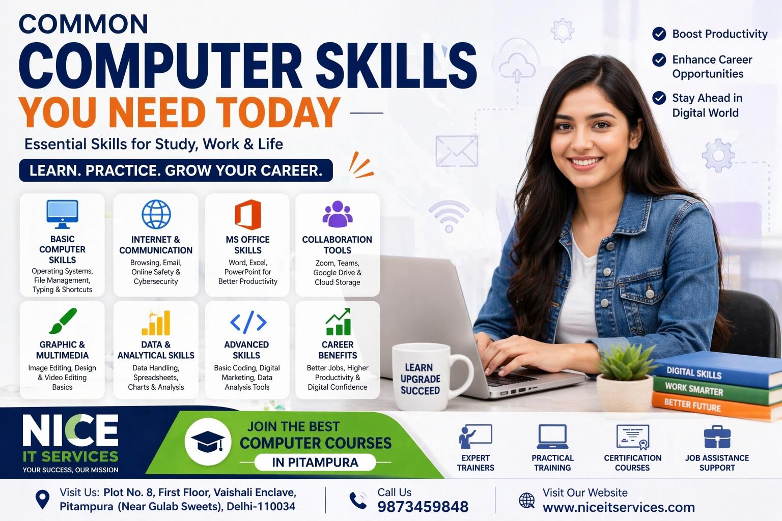 In today’s fast-moving digital world, computer skills are no longer optional—they are essential. Whether you are a student, job seeker, or working professional, having the right set of computer skills can significantly improve your productivity and career prospects. Enrolling in a Computer Course in Pitampura at a reputed Computer Institute in Pitampura can help you build these skills with proper guidance and practical training.