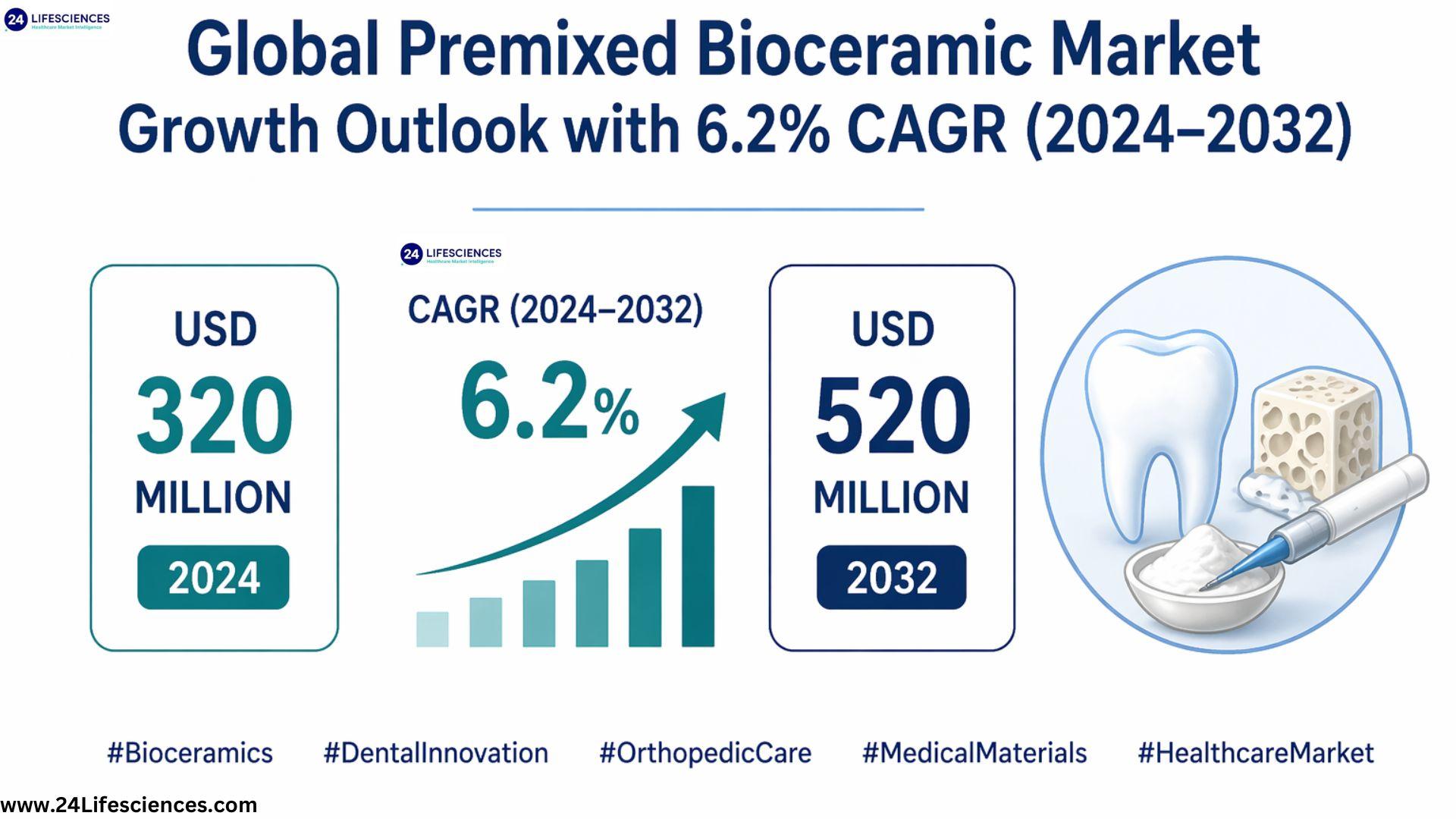 According to a newly published market research report by 24LifeSciencesglobal premixed bioceramic market was valued at USD 320 million in 2024 and is projected to reach USD 520 million by 2032, growing at a compound annual growth rate (CAGR) of 6.2% during the forecast period 2024–2032.