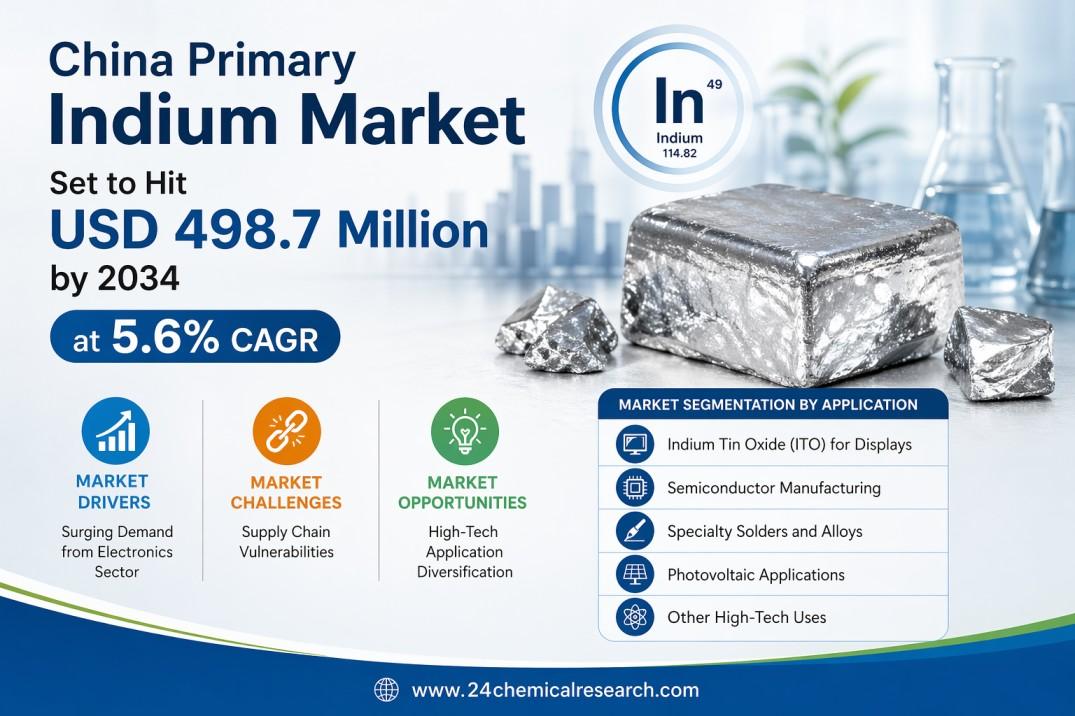 China Primary Indium Market Set to Hit USD 498.7 Million by 2034 at 5.6% CAGR