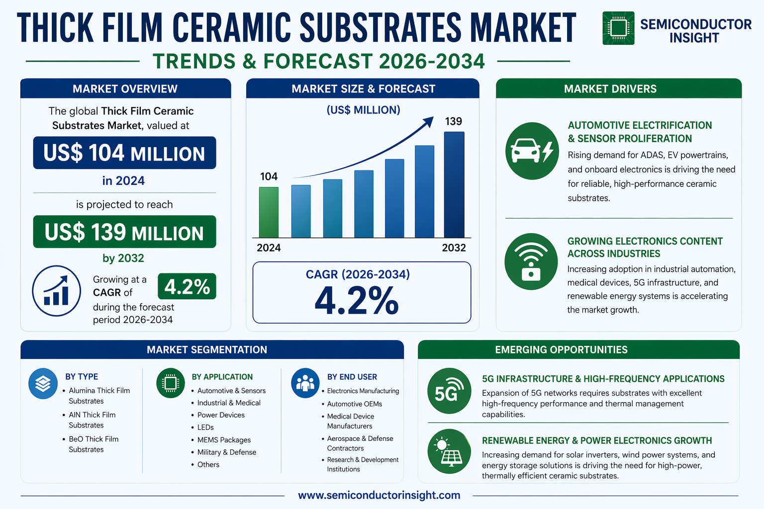 Global Thick Film Ceramic Substrates Market, valued at US$ 104 million in 2024, is projected to grow steadily to US$ 139 million by 2032, reflecting a compound annual growth rate (CAGR) of 4.2%. This growth trajectory is detailed in a comprehensive new report published by Semiconductor Insight, which underscores the indispensable role these substrates play in enabling advanced electronic applications across automotive, industrial, and medical sectors.