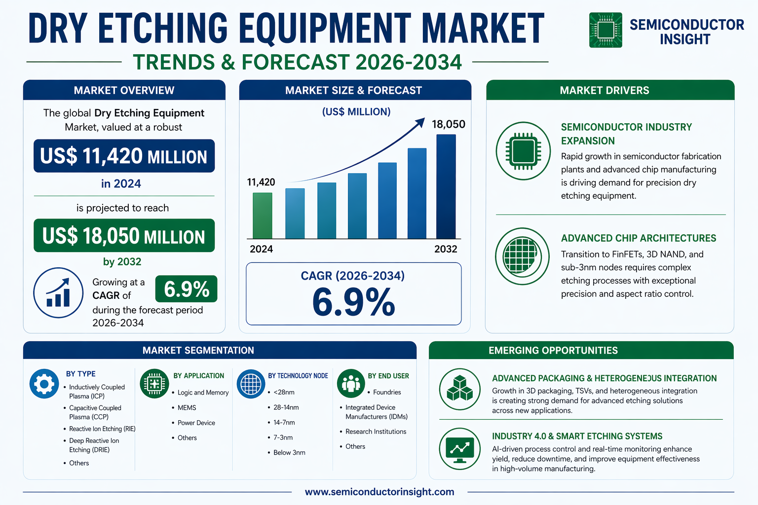 Global Dry Etching Equipment Market, valued at a robust US$ 11,420 million in 2024, is on a trajectory of significant expansion, projected to reach US$ 18,050 million by 2032. This growth, representing a compound annual growth rate (CAGR) of 6.9%, is detailed in a comprehensive new report published by Semiconductor Insight. The study highlights the indispensable role of dry etching equipment in creating intricate circuit patterns on semiconductor wafers, a foundational process for manufacturing advanced chips used in everything from smartphones to artificial intelligence systems.