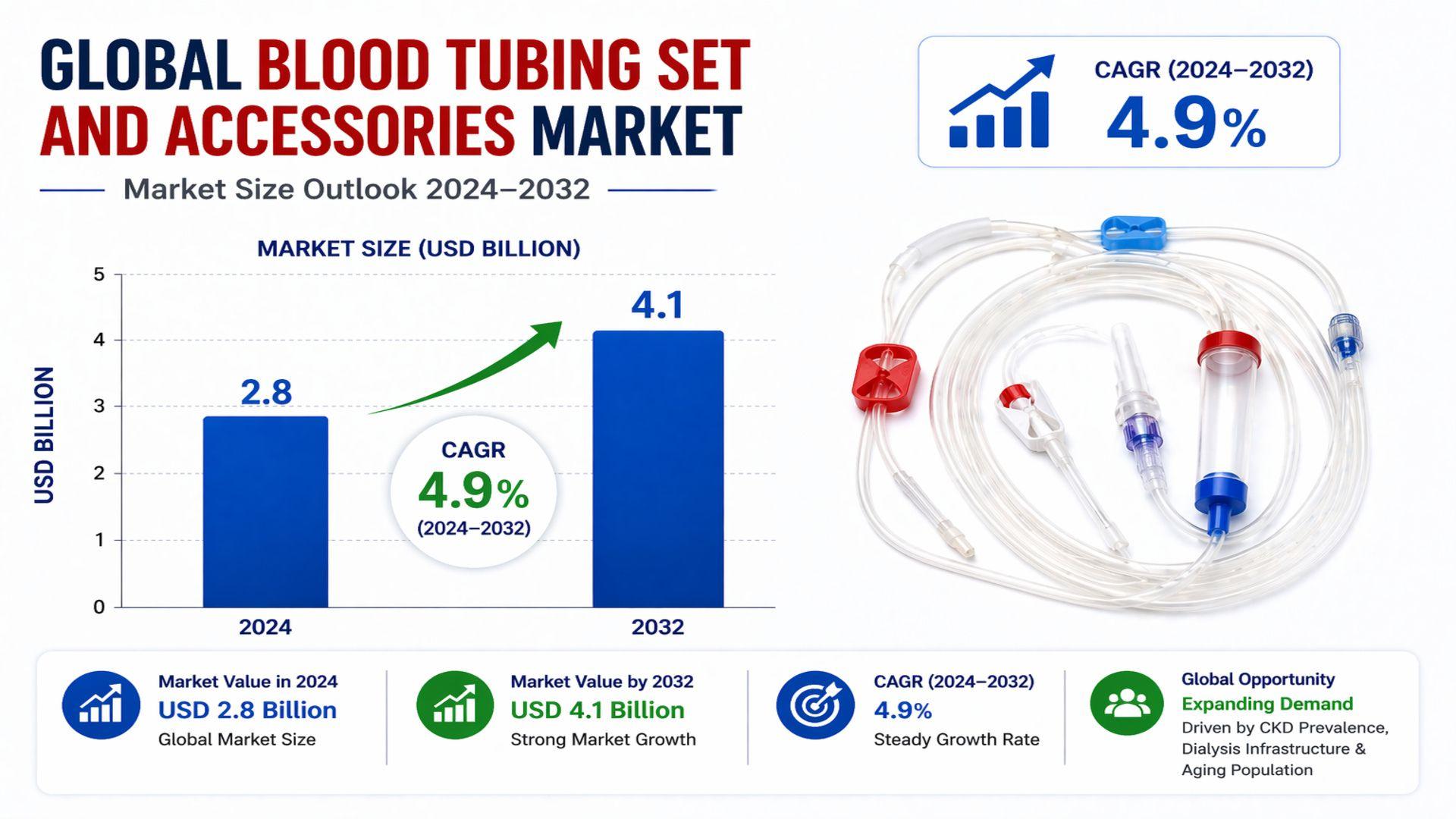 Global blood tubing set and accessories market growth outlook with 4.9% CAGR (2024–2032)