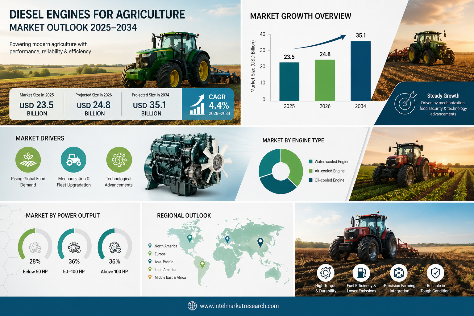 The global agricultural equipment landscape is becoming increasingly favorable for innovation in diesel powertrain technology. Growing precision farming adoption, supportive government mechanization programs, and strategic industry collaborations are accelerating market expansion, especially in Asia-Pacific, Latin America, and the Middle East & Africa. Key growth enablers include: