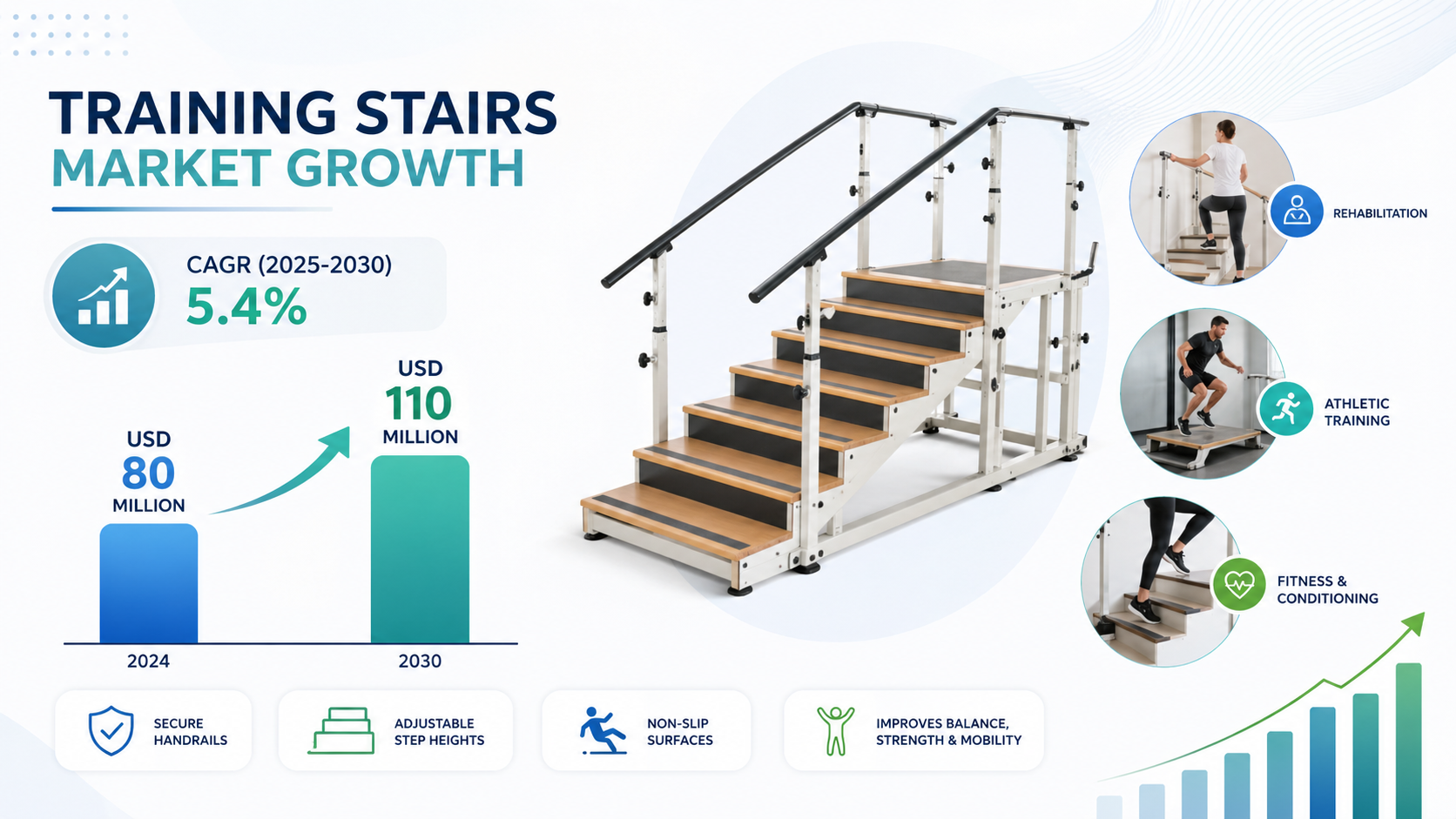 According to a newly published market research report by 24LifeSciences, the global training stairs market was valued at USD 80 million in 2024 and is projected to reach USD 110 million by 2030, growing at a compound annual growth rate (CAGR) of 5.4% during the forecast period 20252030.