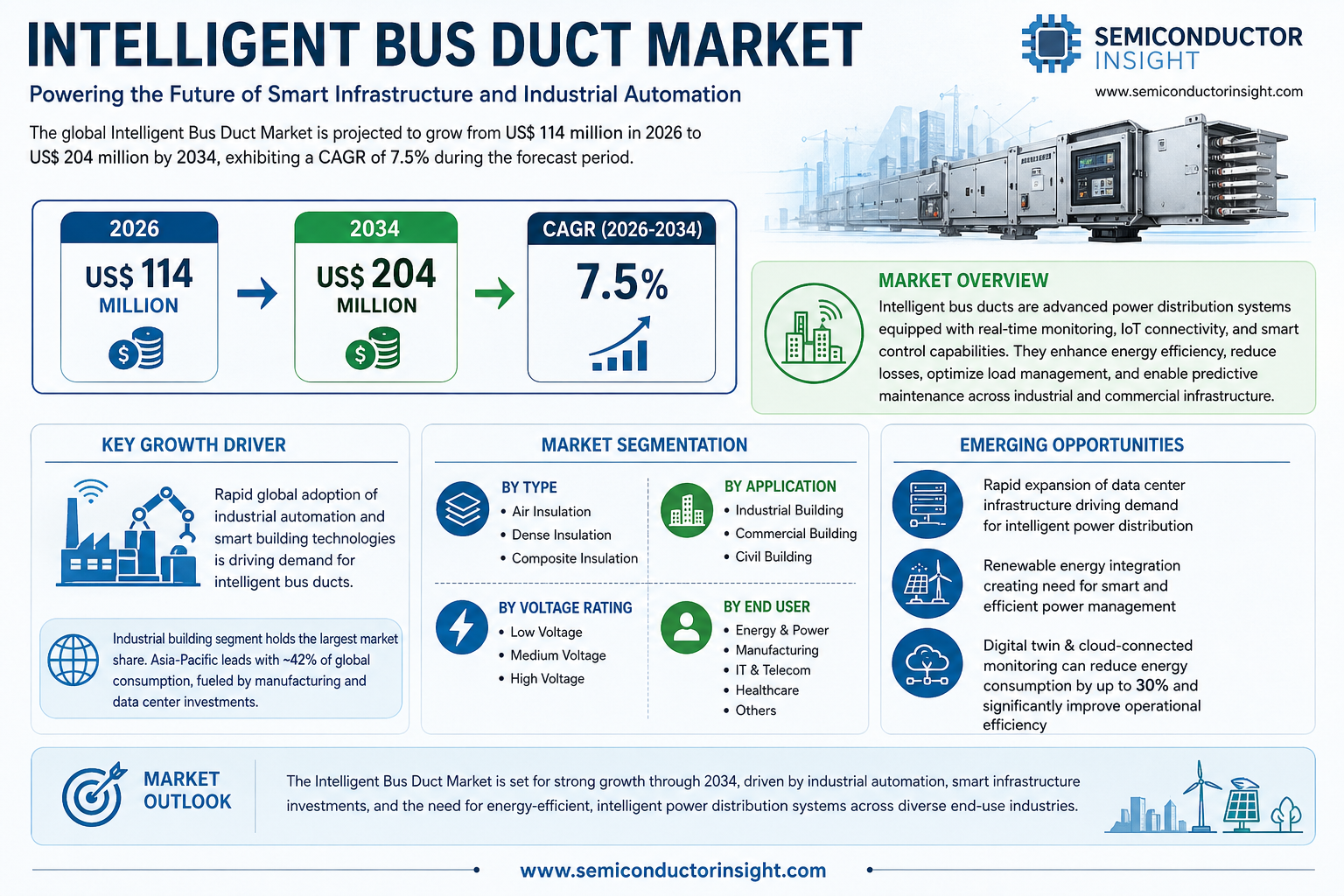 Global Intelligent Bus Duct Market, valued at a robust US$ 114 million in 2024, is on a trajectory of significant expansion, projected to reach US$ 182 million by 2032. This growth, representing a compound annual growth rate (CAGR) of 7.5%, is detailed in a comprehensive new report published by Semiconductor Insight. The study highlights the critical role of these advanced power distribution systems in enhancing energy efficiency and operational intelligence across industrial and commercial infrastructure.