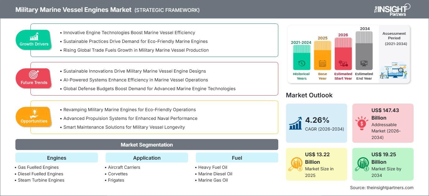 The global military marine vessel engines market size is projected to reach US$ 19.25 billion by 2034 from US$ 13.22 billion in 2025. The market is anticipated to register a CAGR of 4.26% during the forecast period 2026-2034. This growth is underpinned by a strategic shift toward high-performance, technologically advanced engines that offer superior speed, reliability, and reduced acoustic signatures.
