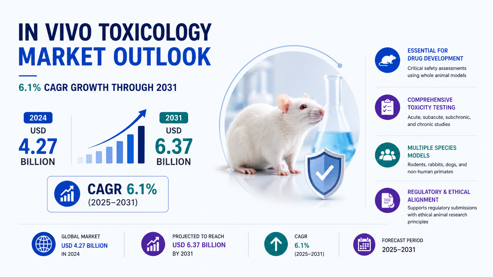 According to a newly published market research report by 24LifeSciences, the global In Vivo Toxicology market was valued at USD 4.27 billion in 2024 and is projected to reach USD 6.37 billion by 2031, growing at a compound annual growth rate (CAGR) of 6.1% during the forecast period 20252031.