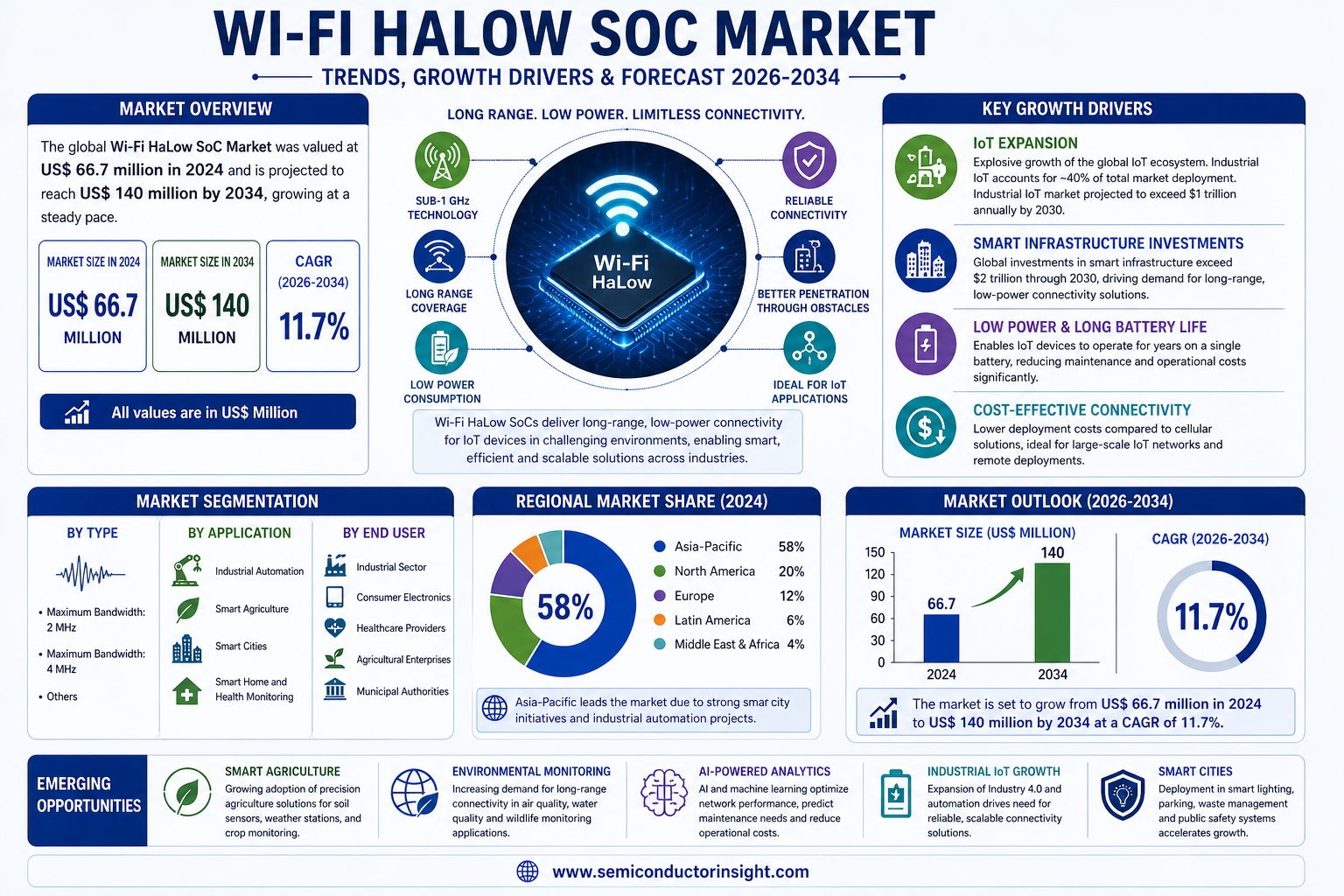 Wi-Fi HaLow SoC Market CAGR 11.7% by 2034
