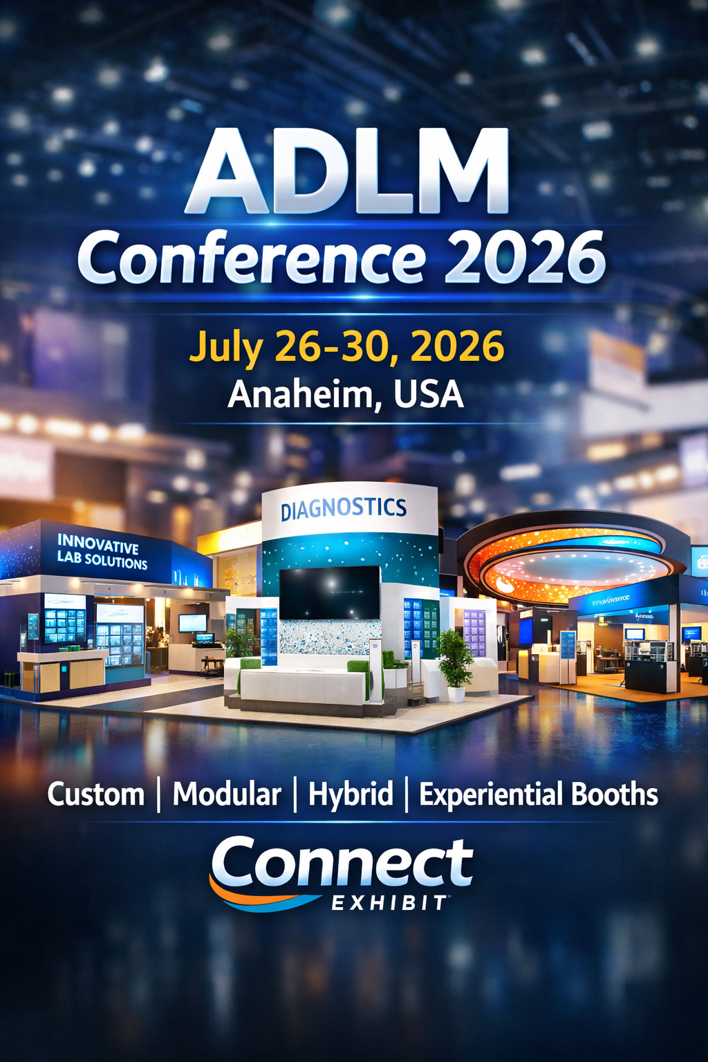Contact us today to start designing your custom exhibit for ADLM Conference 2026! https://www.connectexhibit.com/adlm-conference/ADLM Conference 2026 – Booth Design & Exhibit Services in Anaheim The ADLM Conference 2026 is set to take place from July 26 – 30, 2026, in Anaheim, California, bringing together global leaders, innovators, and professionals from the clinical laboratory and diagnostics industry. Make a Powerful Impression at ADLM 2026 At Connect Exhibit, we specialize in designing and building custom trade show exhibits that help your brand stand out on the show floor. Whether you're launching a new product, building brand awareness, or engaging with key decision-makers, our team ensures your booth delivers results. Our Exhibit Solutions for ADLM Conference 2026 We offer a complete range of booth solutions tailored to your goals and budget: Custom Trade Show Booths – Fully customized designs built to reflect your brand identity Modular Booths – Flexible, cost-effective solutions with modern aesthetics Hybrid Exhibits – A perfect blend of custom and modular elements Experiential Booths – Immersive environments that maximize engagement Exhibit Rentals – High-quality rental booths with full customization options Why Choose Connect Exhibit? End-to-end booth services: design, fabrication, logistics, installation, and dismantling Presence across major U.S. trade show cities including Anaheim Creative, brand-focused designs that attract and convert visitors On-time delivery and dedicated project management Exhibit Stress-Free in Anaheim With extensive experience in U.S. trade shows, our team ensures a seamless exhibiting experience at the ADLM Conference. From concept to execution, we handle everything—so you can focus on networking and business growth. Get Ready for ADLM Conference 2026 Planning to exhibit at ADLM 2026 in Anaheim? Let Connect Exhibit help you create a booth that captures attention and drives results. Contact us today to start designing your custom exhibit for ADLM Conference 2026! https://www.connectexhibit.com/adlm-conference/