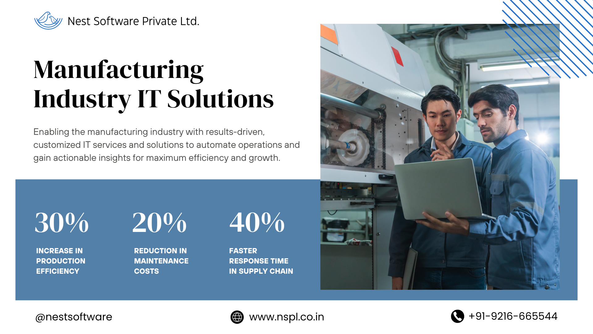 #ManufacturingITSolutionsManufacturing Industry IT Solutions At Nest Software, we understand the everyday challenges faced by manufacturers. That’s why we’ve crafted manufacturing industry IT solutions that are as unique as your operations. Whether you're looking to improve production efficiency, manage inventory, or make smarter decisions with real-time data, our tools are designed to make your life easier. We’re here to help you navigate the complexities of manufacturing with technology that works for you—not the other way around. https://nspl.co.in/manufacturing/ #ManufacturingITSolutions0 Commenti 0 condivisioni 102 Views 0 Anteprima -