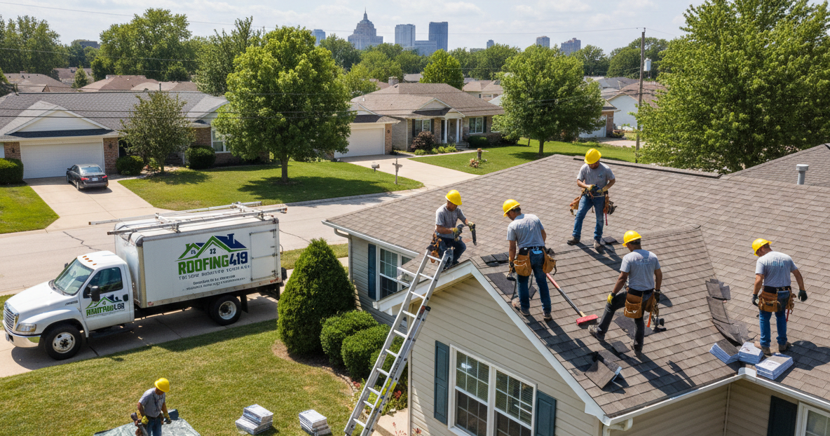 Professional residential roof installation in Toledo, Ohio by Roofing419. We install durable asphalt shingle and metal roofing systems built to handle Toledo’s weather. Call 419-509-0456 for a free estimate today.