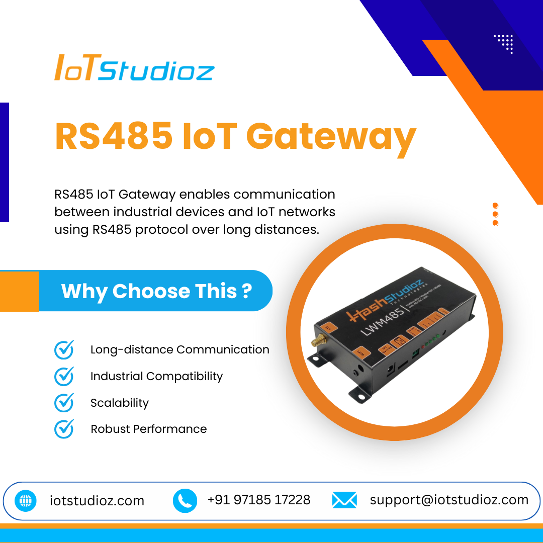 Industrial RS485 IoT Gateway with Cloud Integration This industrial-grade RS485 IoT Gateway connects multiple RS485 devices to cloud platforms for centralized data access. With robust communication protocols, edge processing capabilities, and secure connectivity, it simplifies device management, enables predictive maintenance, and enhances decision-making in industrial and commercial deployments. https://iotstudioz.com/product/rs-485-iot-gateway/